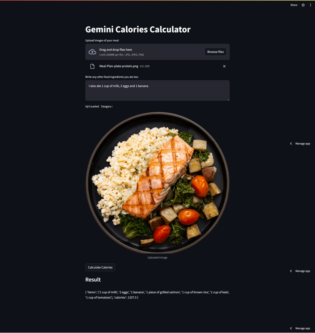 You will get a calories calculator built with Python, Streamlit and Gemini API